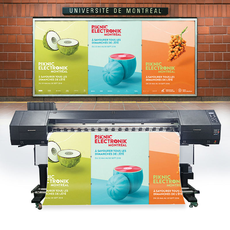 A 1.8-meter all-material UV advertising printer for outdoor bus stop signs and poster printing. -